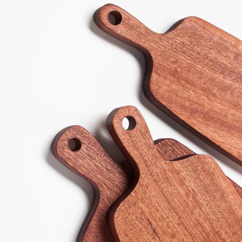 เขียงไม้ไผ่เรซินไม้มะเกลือชาร์คิวรีชีสที่มีด้ามจับลวดลายเป็นคลื่นสวยงามสำหรับเตรียมอาหารในห้องครัวเป็นมิตรกับสิ่งแวดล้อม