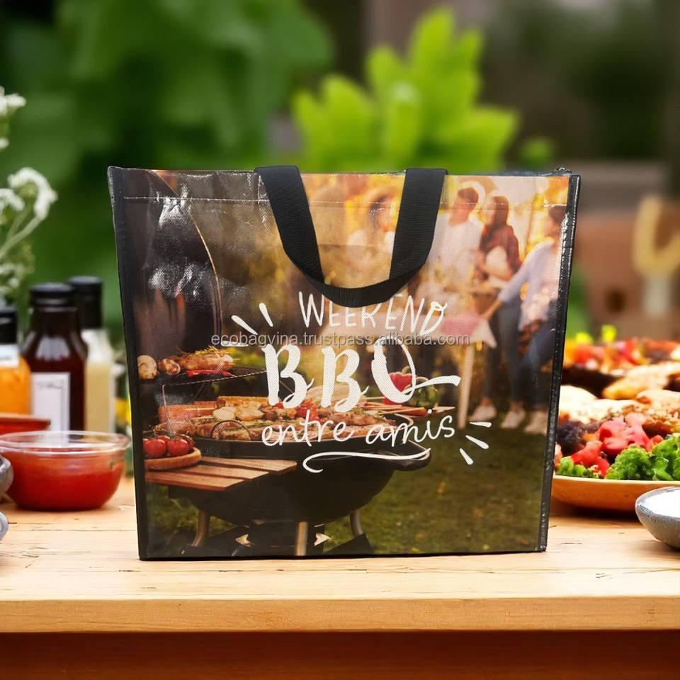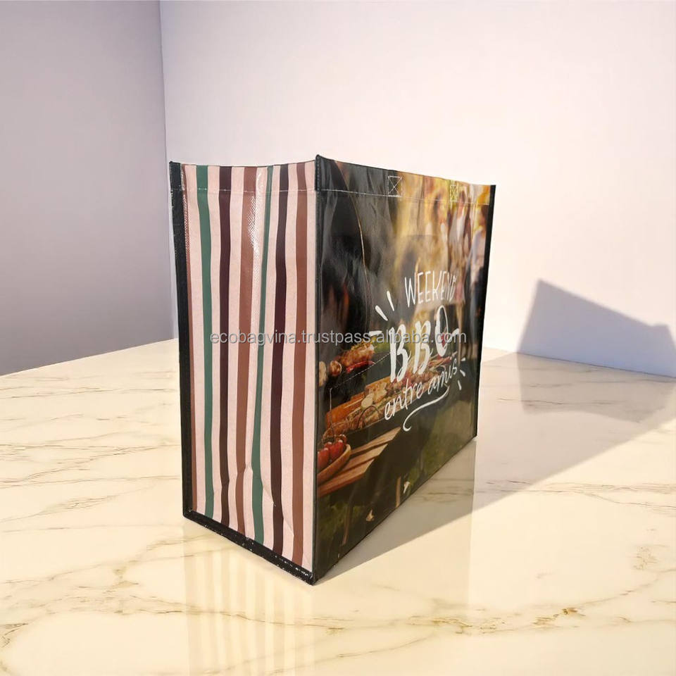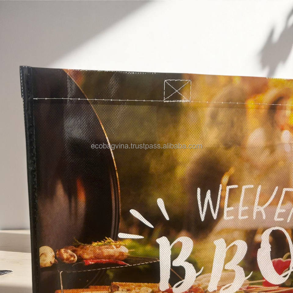 ถุงช้อปปิ้งแบบไม่ทอเคลือบเงา ทนทาน ใช้ซ้ำได้ เป็นมิตรกับสิ่งแวดล้อม พิมพ์โลโก้ได้ตามต้องการ ไม่ใช้วัสดุ PP กระเป๋าถือแบบไม่ทอ ECOBAG VINA สะพายไหล่