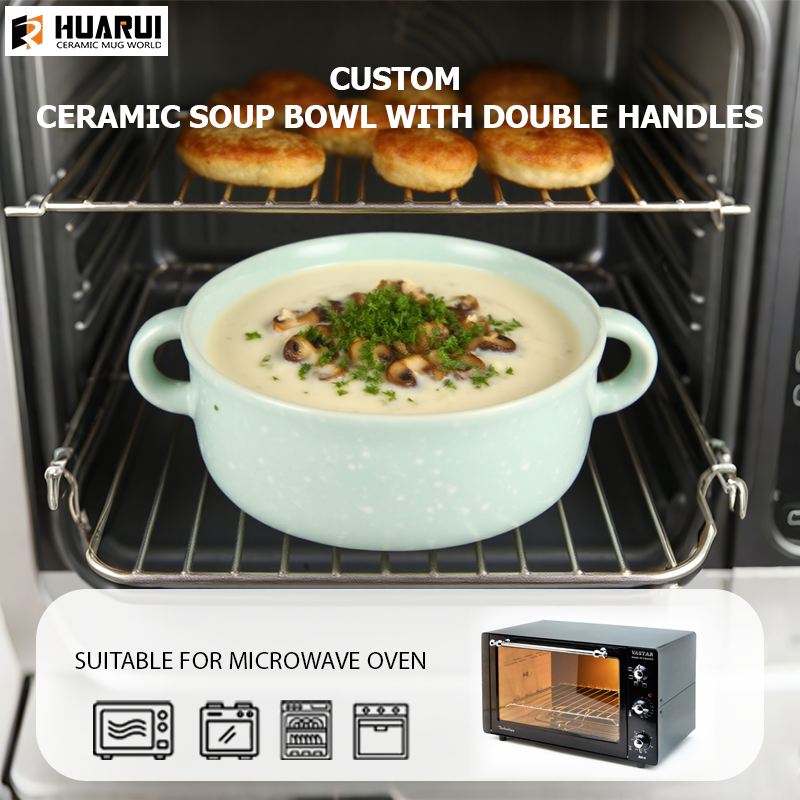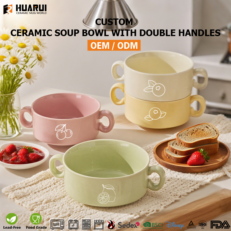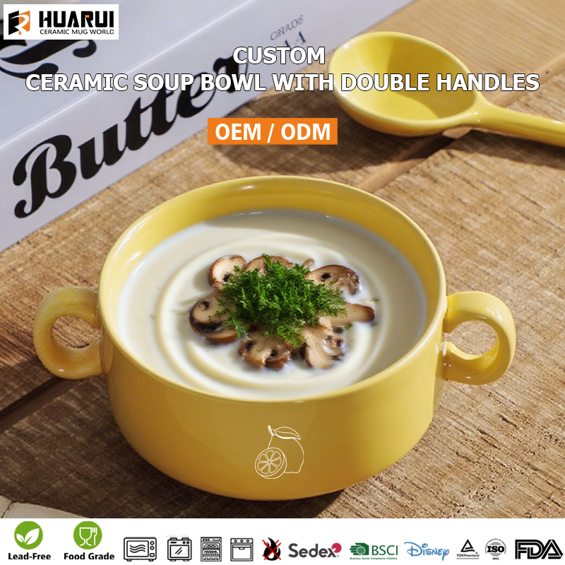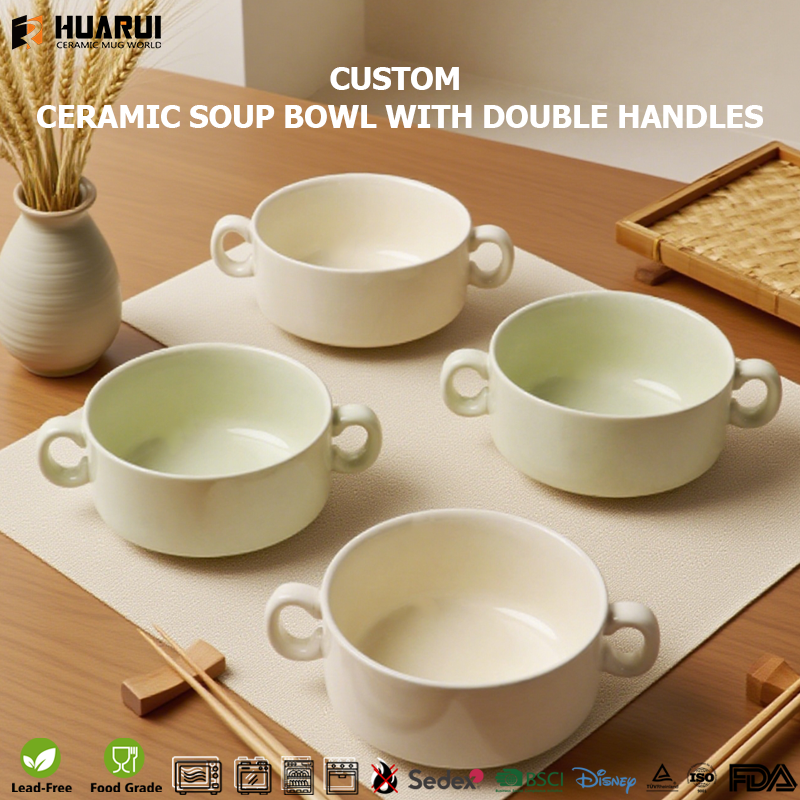 ชามเซรามิกใส่ก๋วยเตี๋ยวหัวหอมแบบฝรั่งเศสพร้อมที่จับคู่เป็นมิตรกับสิ่งแวดล้อมไมโครเวฟสีขาวออกแบบได้ตามที่ต้องการ