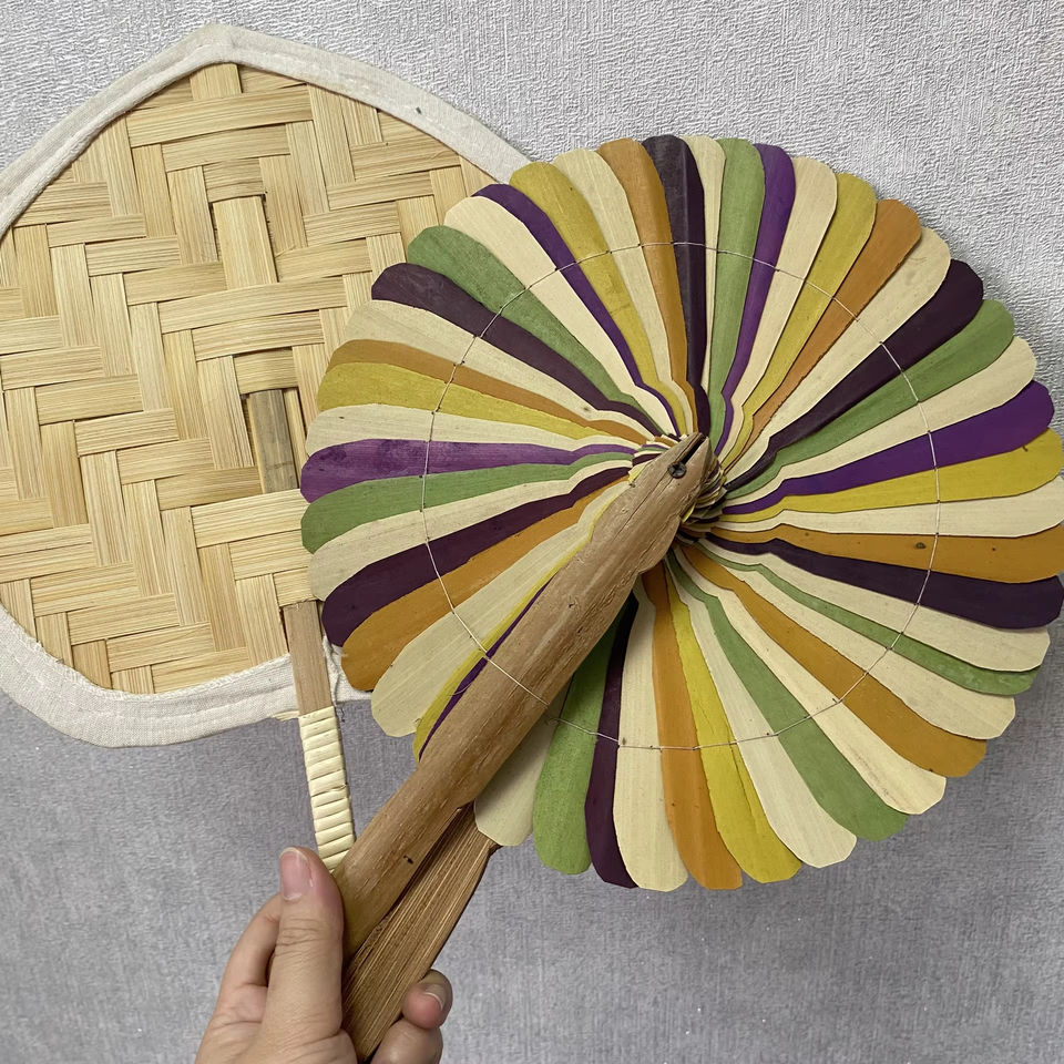 พัดลมใบปาล์มหลากสีตกแต่งทำจากไม้ไผ่ปรับแต่งได้เป็นมิตรกับสิ่งแวดล้อมเหมาะสำหรับของขวัญงานแต่งงานและโปรเจกต์แบบ DIY