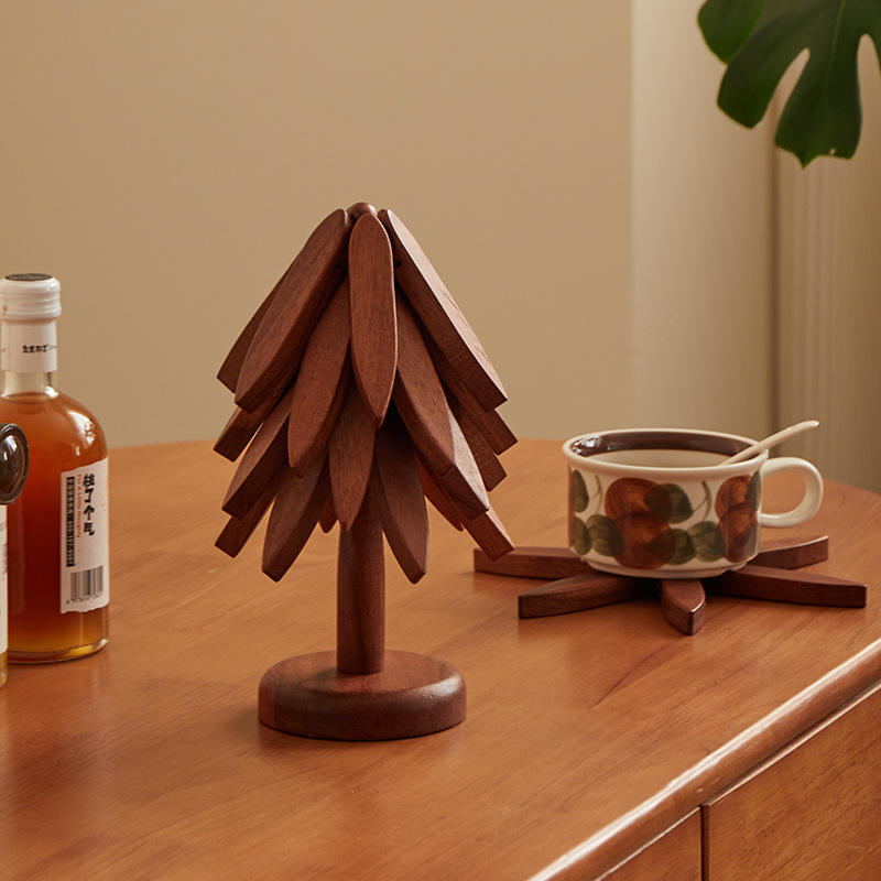 ชุดที่รองแก้วเครื่องดื่มวอลนัทรูปต้นไม้