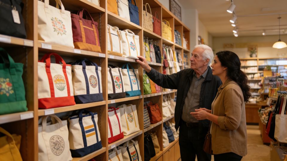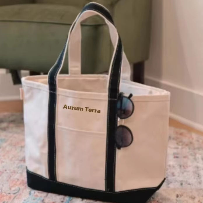 กระเป๋าช้อปปิ้งผ้าแคนวาสแบบดั้งเดิม ใช้ซ้ำได้ เป็นมิตรกับสิ่งแวดล้อม พร้อมโลโก้สั่งทำพิเศษ และช่องใส่ของด้านใน