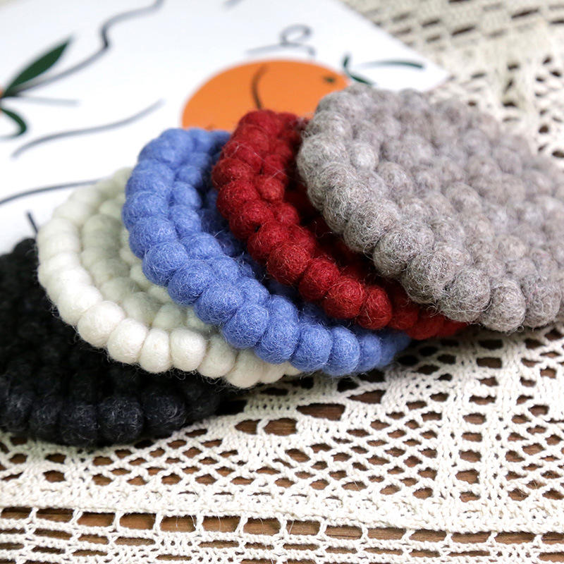 แผ่นรองจานทรงกลมทำจากผ้าขนสัตว์ที่รองแก้วชาผ้าสักหลาดเป็นมิตรกับสิ่งแวดล้อม