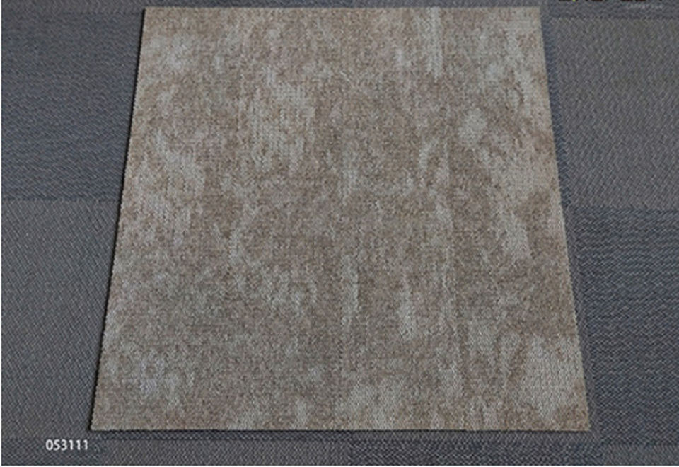 กระเบื้องพรมกันไฟแบบเป็นมิตรกับสิ่งแวดล้อม ขนาด 50x50 ซม. ด้านหลังเป็น PE ลายทางสีเทา สำหรับทางเดินโรงแรม สำนักงานเชิงพาณิชย์ และใช้ในบ้าน ทำจากไนลอน