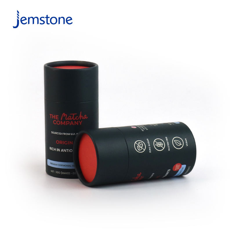 กล่องกระดาษคราฟท์เกรดอาหารเป็นมิตรกับสิ่งแวดล้อมกล่องกระดาษแข็งกระดาษคราฟท์สีดำผงมัทฉะบรรจุภัณฑ์กระบอกชากาแฟแบบกำหนดเอง