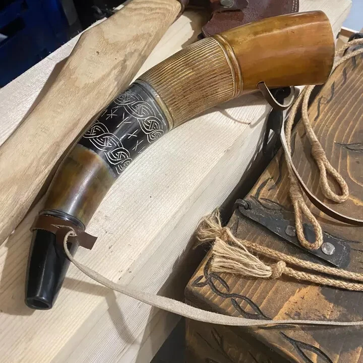 Eco-friendly Genuine Viking Blowing Horn with Carving Handcrafted Polished Animal Style From 100% Natural Horn Black Brown Color