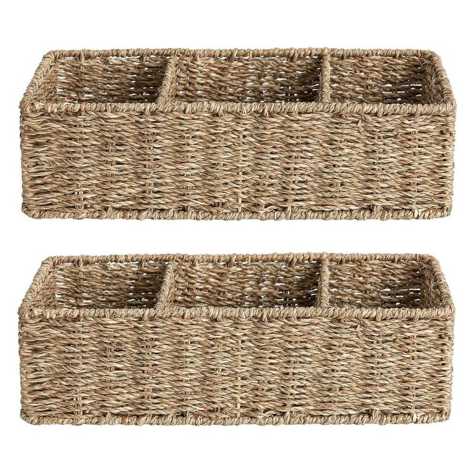 ตะกร้าสานมือหญ้าทะเล3ส่วนเป็นมิตรกับสิ่งแวดล้อมตะกร้าเก็บของขนาดเล็กที่เหมาะ