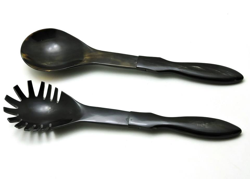 ชุดช้อนสลัดทำจากเขาควายธรรมชาติ 2 ชิ้น ผลิตด้วยมือ เป็นมิตรต่อสิ่งแวดล้อม ราคาขายส่ง