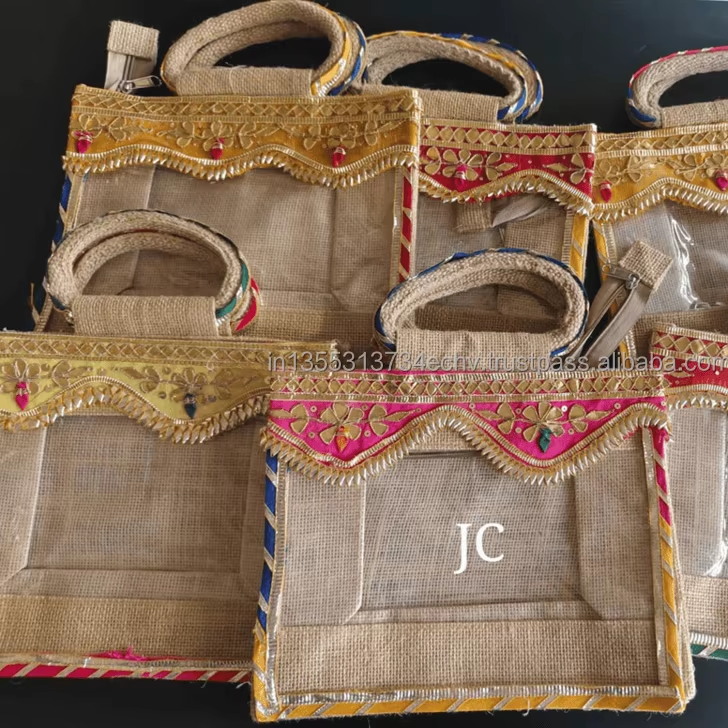 ถุงของชำร่วยงานแต่งงานอินเดีย ถุงปอกระเจาปักลายโกต้า สำหรับงานฮัลดี ซันจีต เมห์นดี งานเลี้ยงฉลองทารก งานแต่งงาน และงานเลี้ยงฉลองต่างๆ