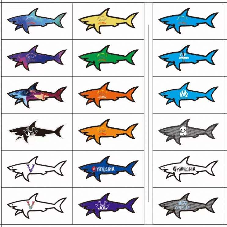 สติกเกอร์เคลือบเงาพิมพ์ลายการ์ตูนฉลาม PVC ปลอดสารพิษ กันน้ำ ทนรังสียูวี สำหรับตกแต่งเทศกาลเดือนกรกฎาคม Gertrude CP
