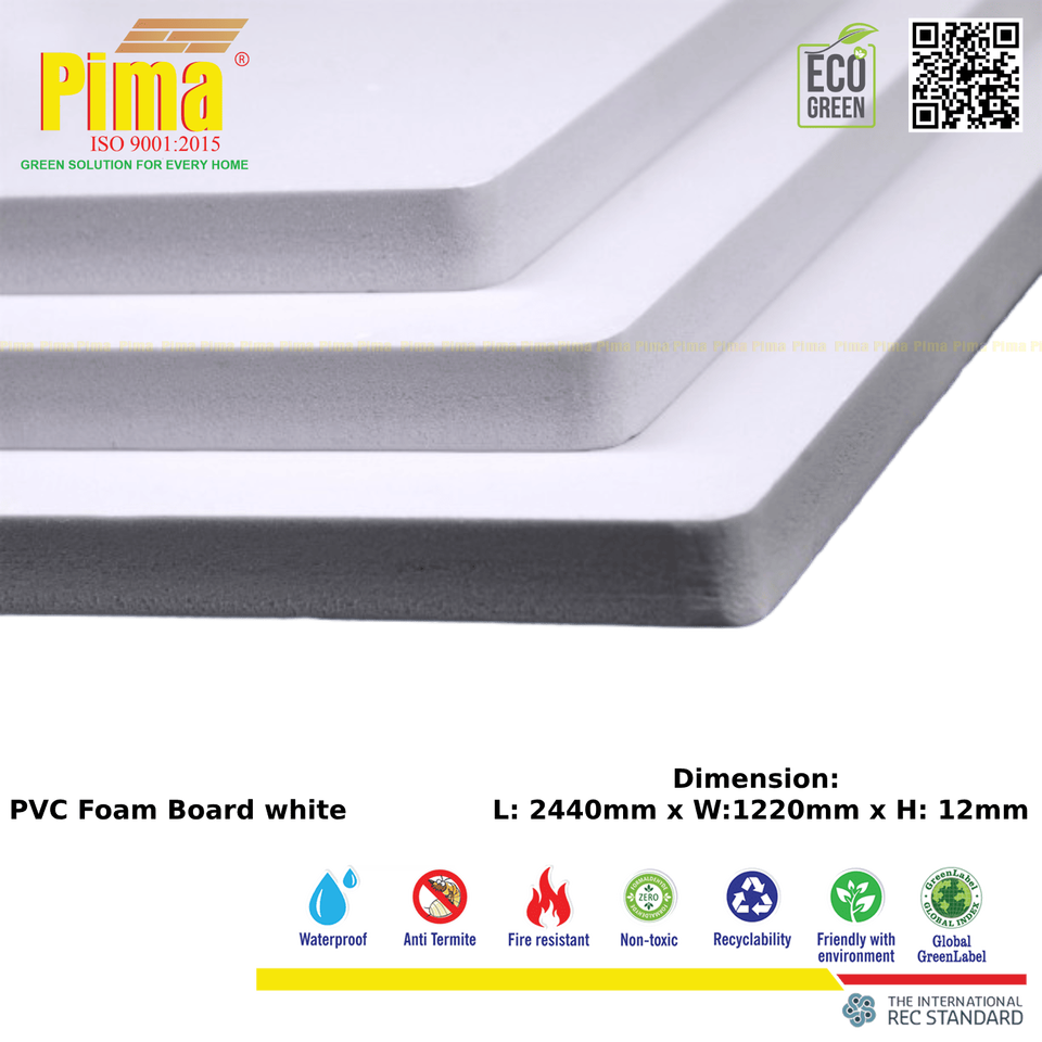 แผ่นโฟมพีวีซี WPC ที่เป็นมิตรกับสิ่งแวดล้อมความหนา12มม. แผ่นสีขาวความหนาแน่น cm3 0.6ก./สำหรับเฟอร์นิเจอร์ห้องน้ำ