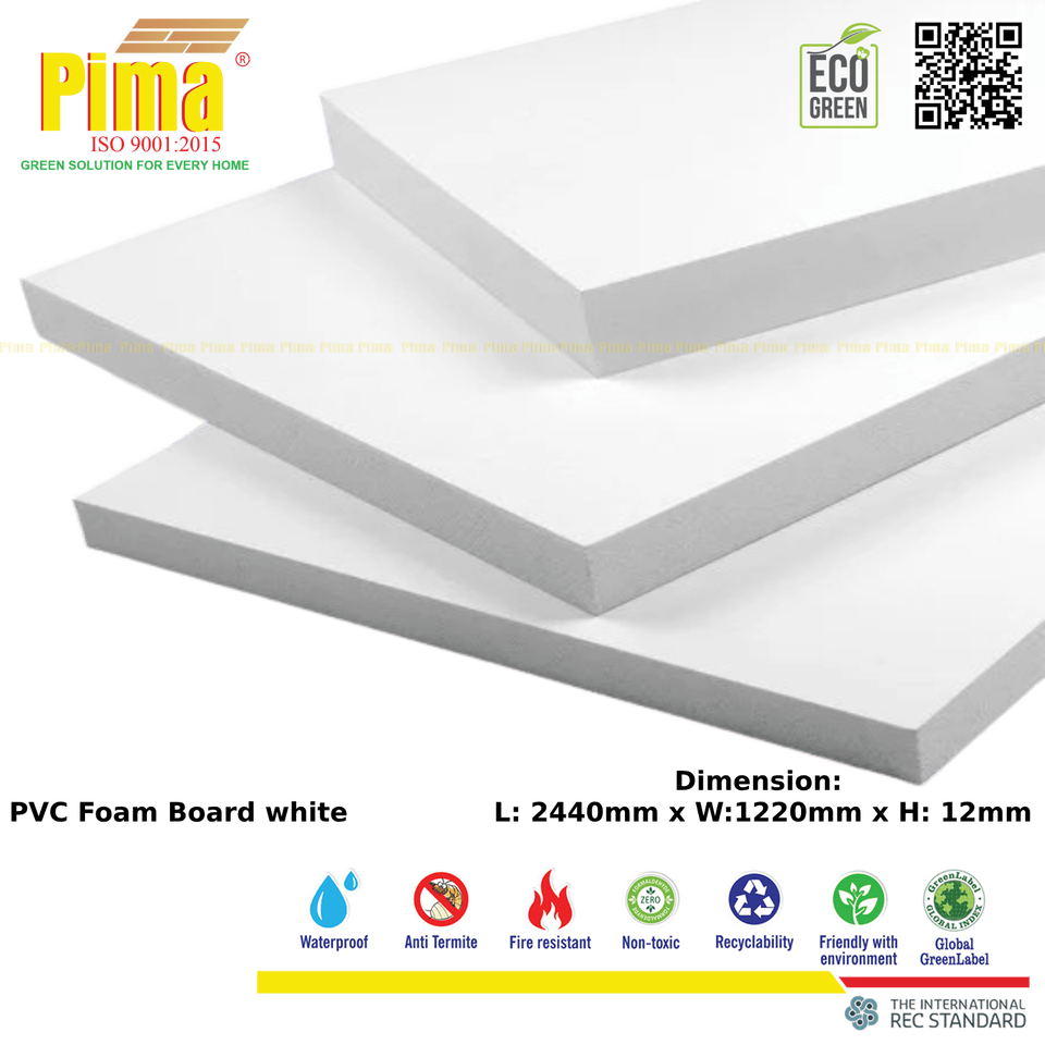 แผ่นโฟมพีวีซี WPC ที่เป็นมิตรกับสิ่งแวดล้อมความหนา12มม. แผ่นโพลีไวนิลสีขาวความหนาแน่น cm3 0.6ก./สำหรับเฟอร์นิเจอร์ห้องครัวห้องน้ำ