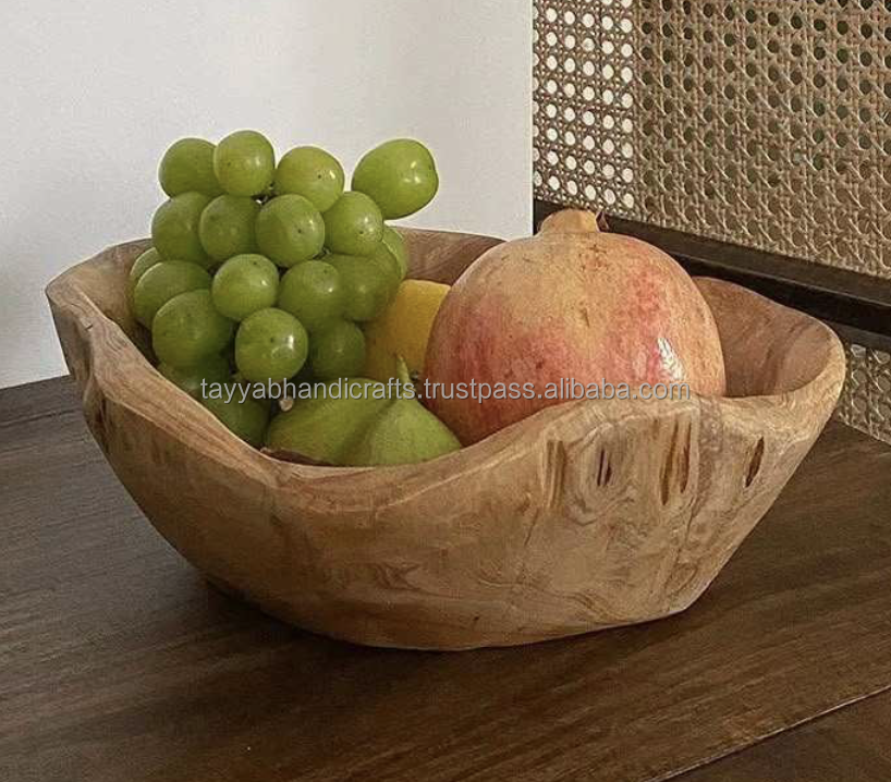 Eco-friendly Polished Wooden Classic Handmade Salad Serving Bowl for Soup Hand Carved Wood for Presents