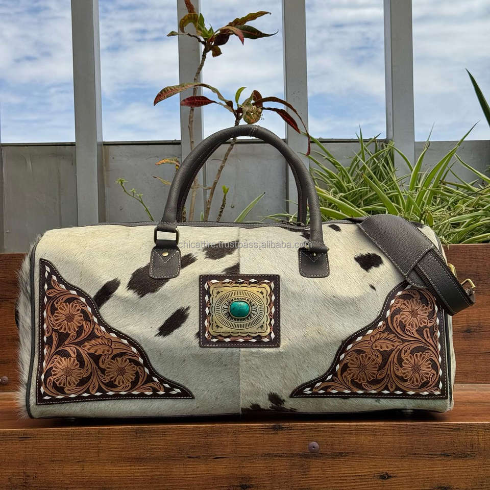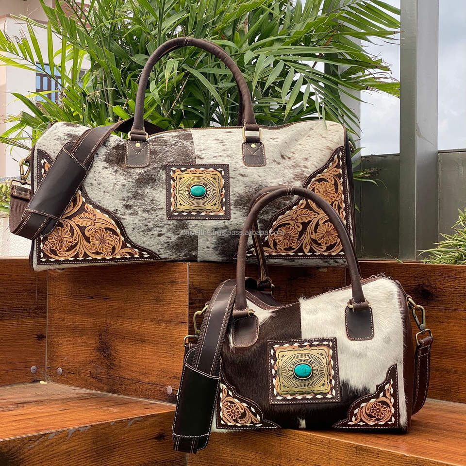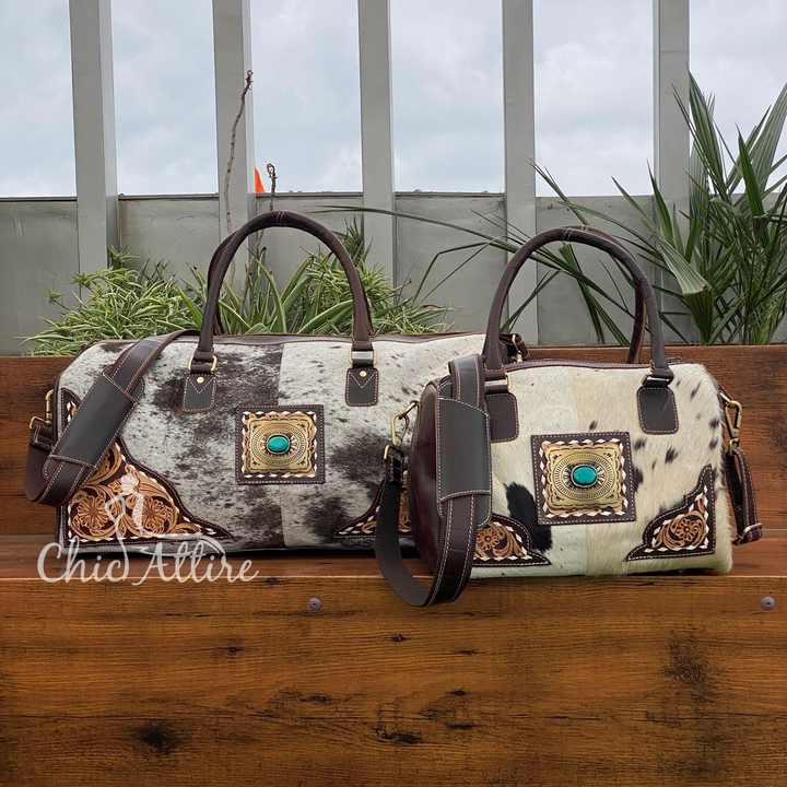Product name:Tooled Cowhide Leather 2- piece Duffel Set