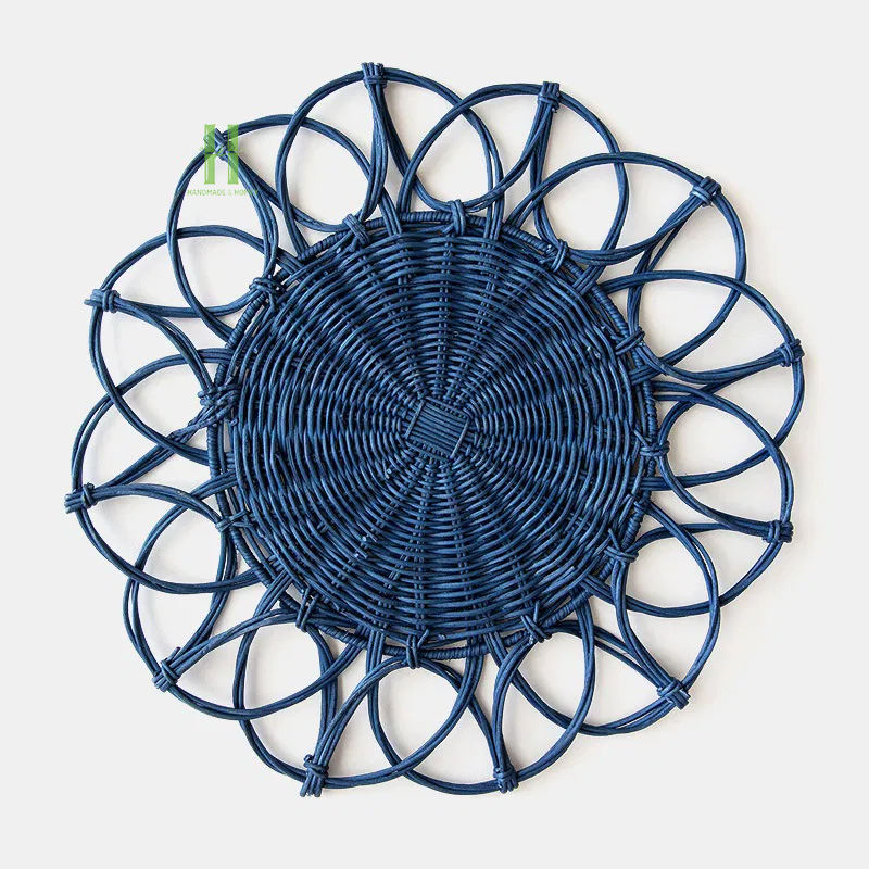 แผ่นรองจานหวายตกแต่งผนังรูปทรงกลมลายดอกไม้ แผ่นรองจานหวายสำหรับใช้ในบ้าน ผลิตในเวียดนาม รับผลิตแบบ OEM