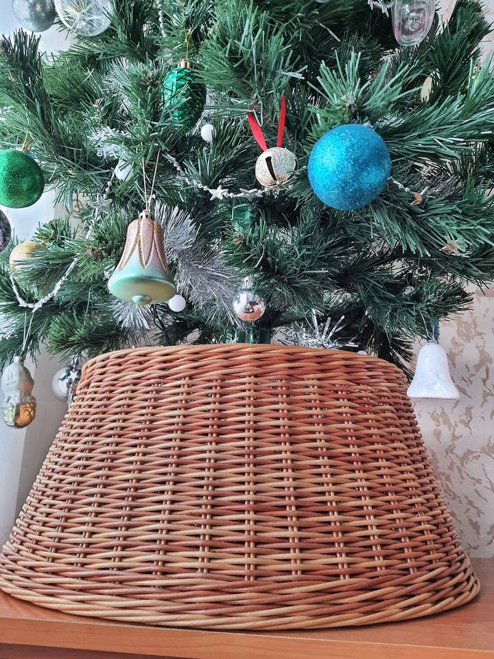 Eco-friendly Rattan Christmas Tree Collar Handcrafted Rattan Tree Skirt Boho Basket for Christmas Tree Decoration