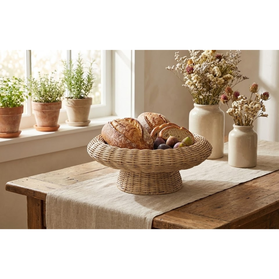 ถาดวางผลไม้หวายรักษ์โลก แท่นวางเสิร์ฟแบบมินิมอล ผลิตจากวัสดุหวายที่ยั่งยืน ผู้จัดจำหน่ายเครื่องครัวจากเวียดนาม
