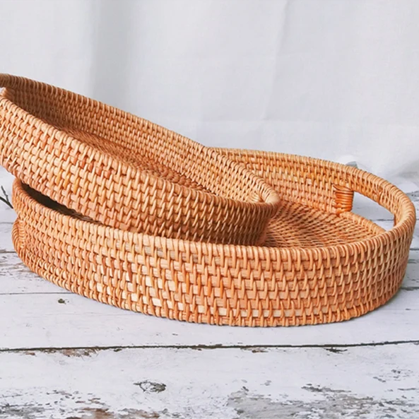 Vietnam-Made Eco-friendly Round Rattan Tray Boho Style Coffee Table for Living Room Indoor Home Decor and Storage Serving Tray