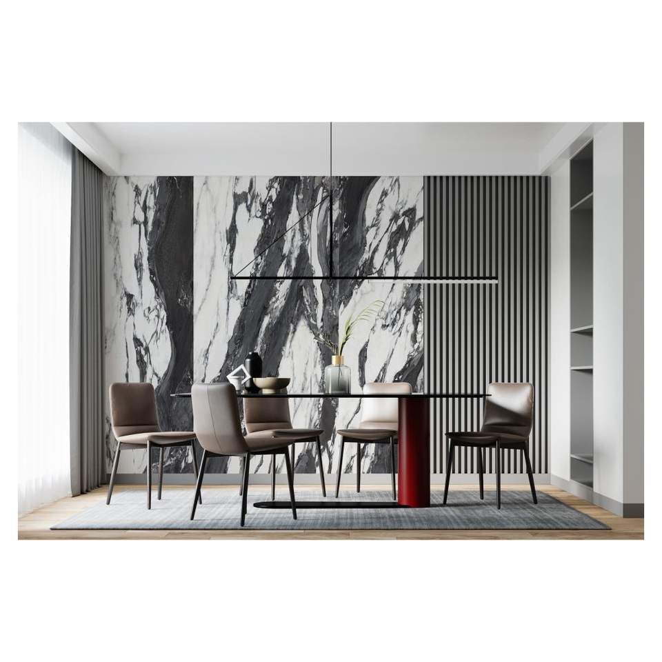 แผ่นผนัง 3 มิติ ยืดหยุ่น ผลิตจากแคลเซียมซิลิเกต รีไซเคิล เป็นมิตรกับสิ่งแวดล้อม ไม่มีการกั้น ลายหิน