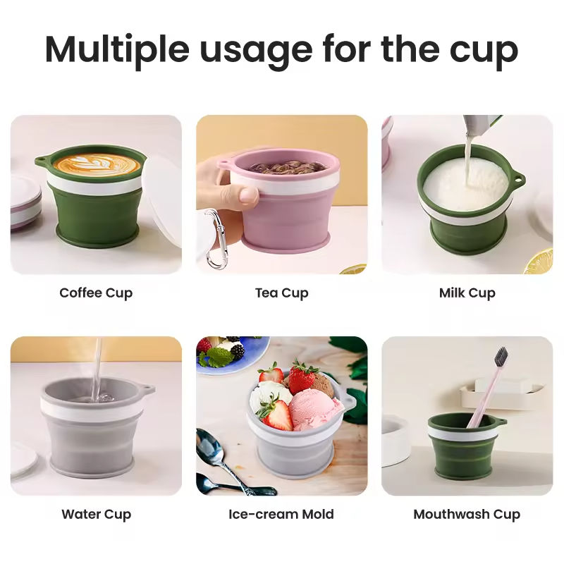 แก้วกาแฟพับได้แบบพกพา ขนาดเล็ก 170 มล. 350 มล. ทำจากซิลิโคน ใช้ซ้ำได้ เป็นมิตรกับสิ่งแวดล้อม พร้อมโลโก้