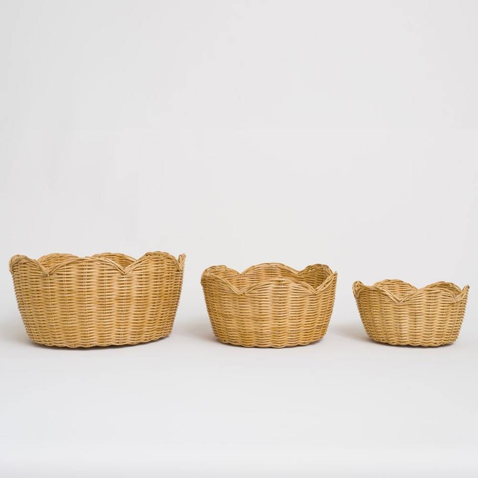 ชุดชามหวายธรรมชาติทรงกลมขอบหยัก 3 ใบ ดีไซน์อเนกประสงค์สำหรับใส่อาหารและจัดเก็บ เป็นมิตรกับสิ่งแวดล้อม สไตล์วินเทจ