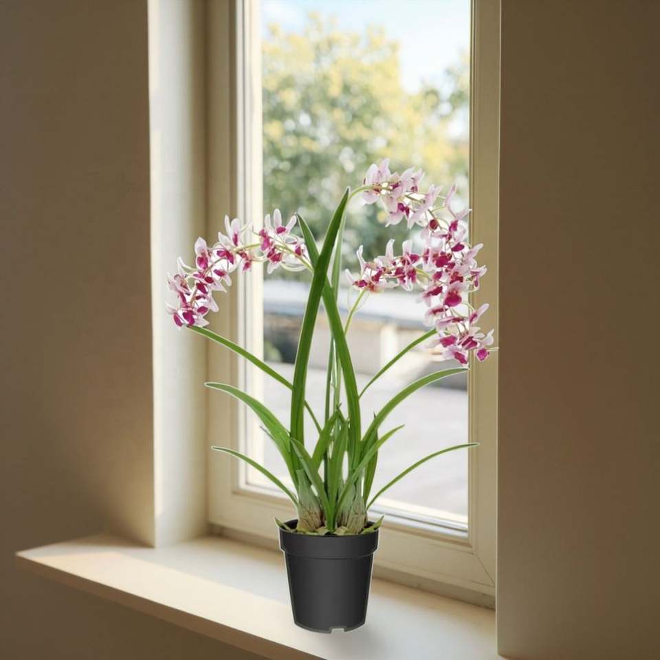 กล้วยไม้ผีเสื้อไหมเทียมแบบเป็นมิตรกับสิ่งแวดล้อม สัมผัสเหมือนจริง สีขาว สำหรับตกแต่งกลางแจ้งและในร่ม