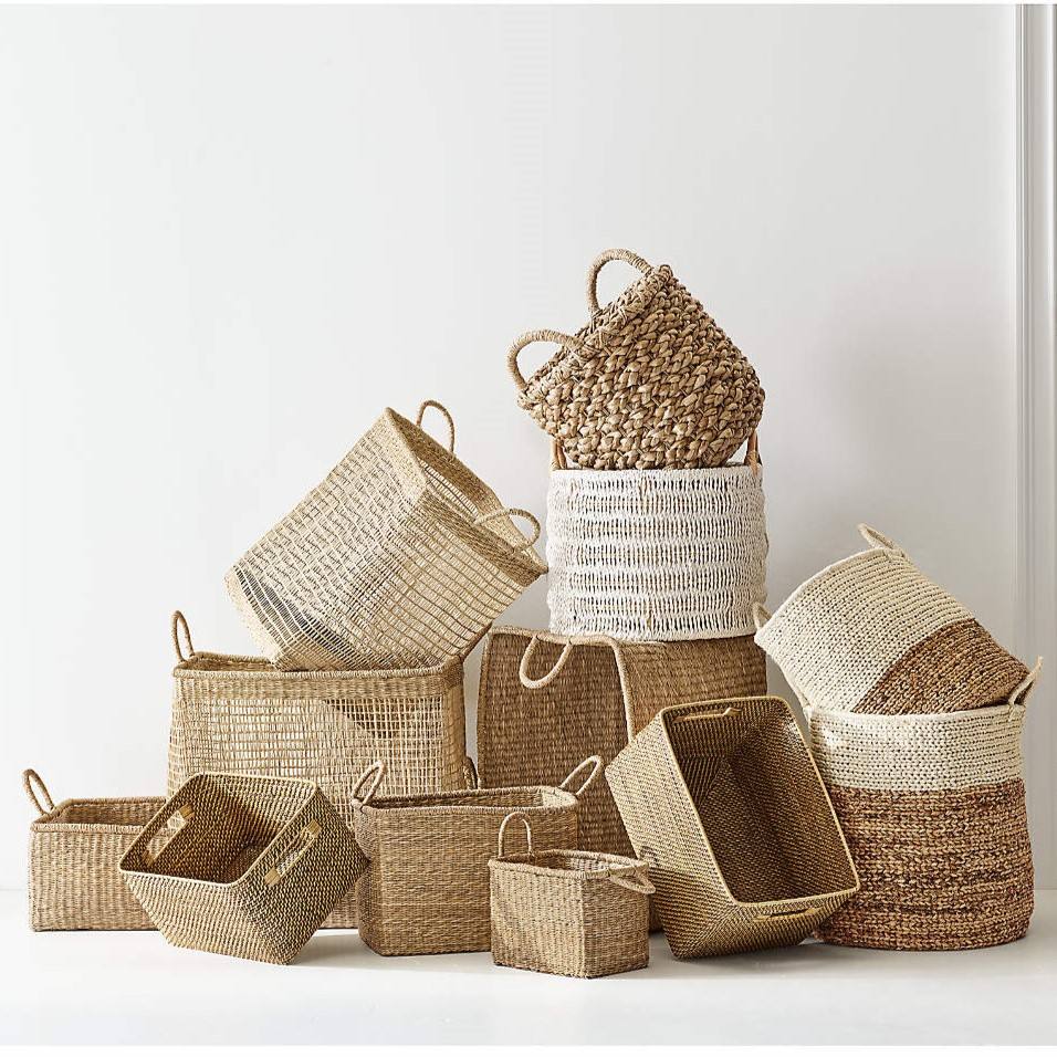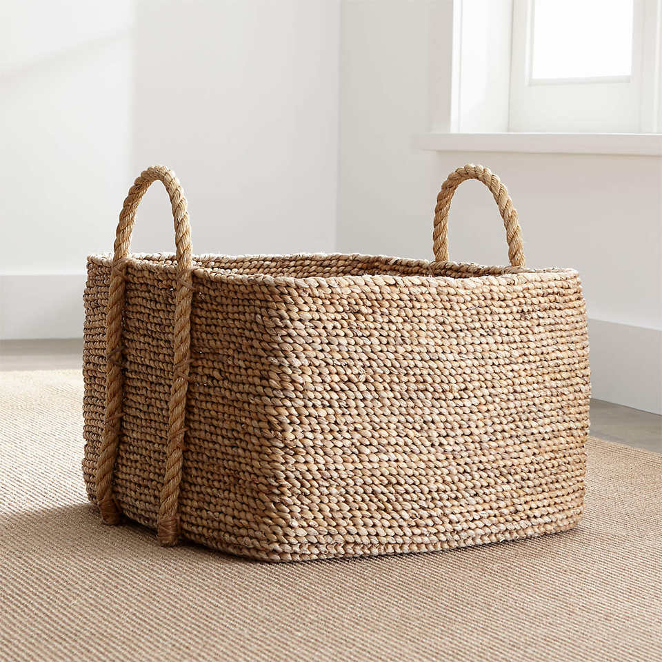 ตะกร้าซักผ้าผักตบชวาทรงสี่เหลี่ยมเป็นมิตรกับสิ่งแวดล้อมพร้อมที่จับทำจากเวียดนามสำหรับห้องนั่งเล่นห้องนอนสถานรับเลี้ยงเด็ก