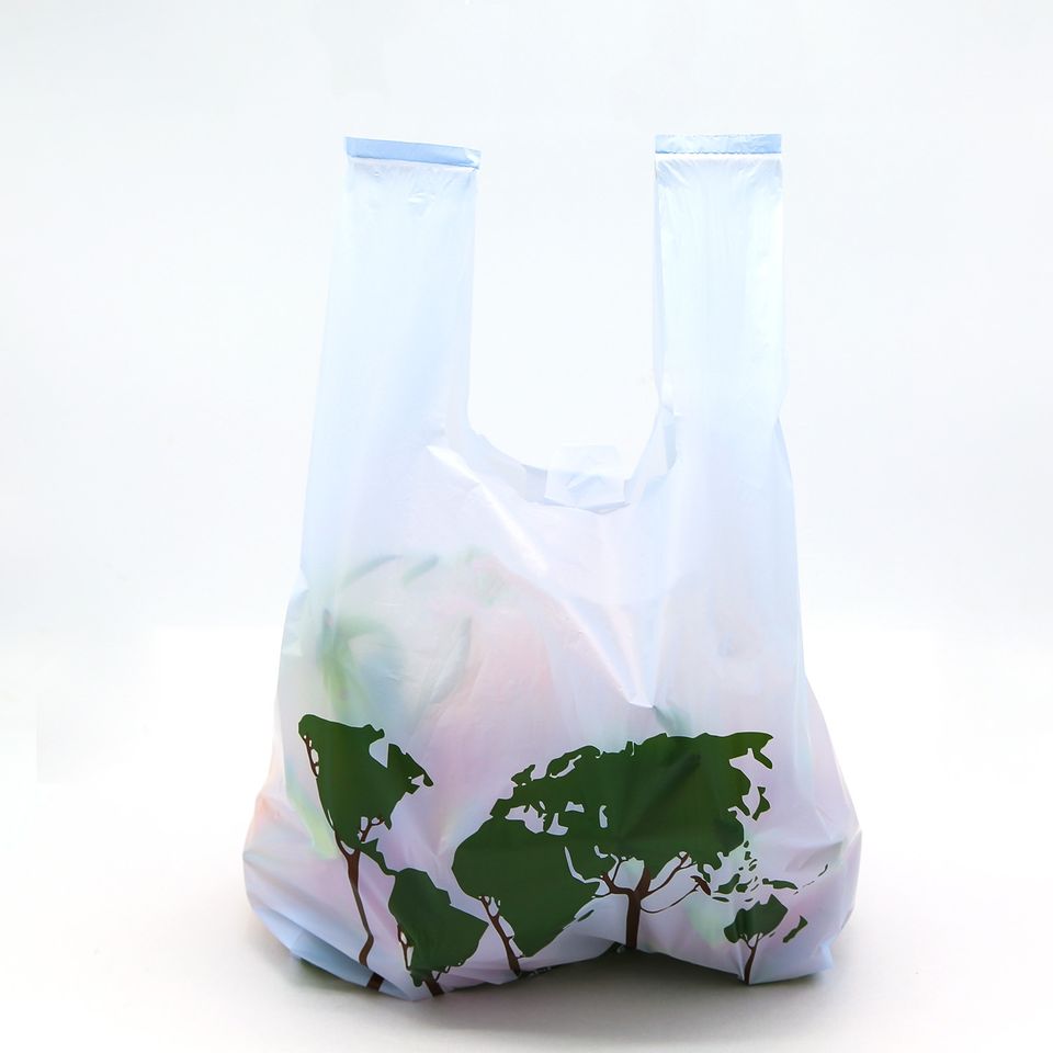 ถุงช้อปปิ้งพลาสติกเสื้อยืดย่อยสลายได้ทางชีวภาพ100% ซุปเปอร์มาร์เก็ตเป็นมิตรกับสิ่งแวดล้อม