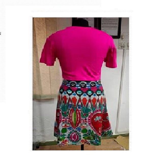 เสื้อผ้าผู้หญิงลำลองสำหรับฤดูร้อน กระโปรงผ้าฝ้ายเจอร์ซีย์ 100% เป็นมิตรกับสิ่งแวดล้อม ผ่านกระบวนการซักด้วยเอนไซม์ พิมพ์ลายแบบดิสชาร์จ คอกลม แขนสั้น