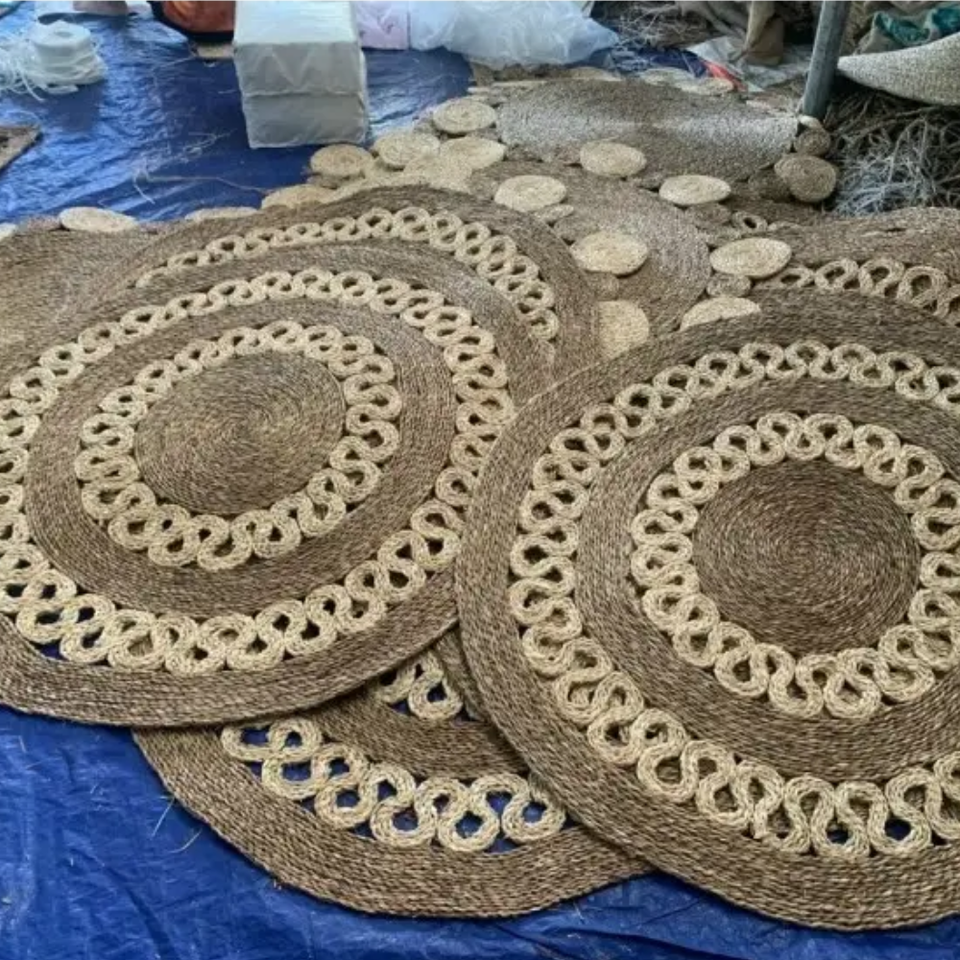 พรมหญ้าทะเลสานทรงกลมแบบวินเทจเสื่อปูพื้นหวายเป็นมิตรกับสิ่งแวดล้อมชุดของตกแต่งบ้านขึ้นบ้านใหม่จากผู้ผลิตในเวียดนาม