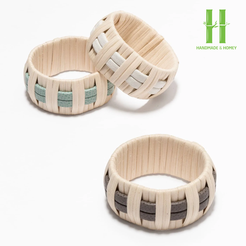 ห่วงใส่ผ้าเช็ดปากทำจากไม้ไผ่โบฮีเมียนแบบทำมือสไตล์วินเทจสำหรับงานแต่งงานและงานปาร์ตี้สไตล์เวียดนามทนทานเป็นมิตรกับสิ่งแวดล้อม