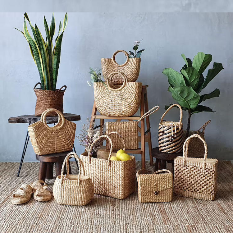 กระเป๋าช้อปปิ้งผักตบชวา,กระเป๋าโท้ทฟางแฟชั่นฤดูใบไม้ร่วงใหม่ในเวียดนามขายส่ง