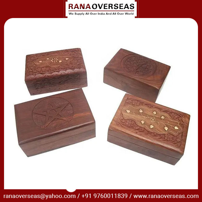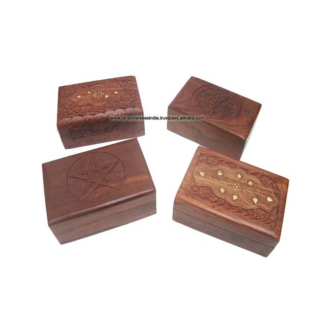 กล่องเก็บเครื่องประดับไม้ทำมือรักษ์โลก ประดับทองเหลือง รูปทรงสี่เหลี่ยมผืนผ้า ชุด 4 ชิ้น