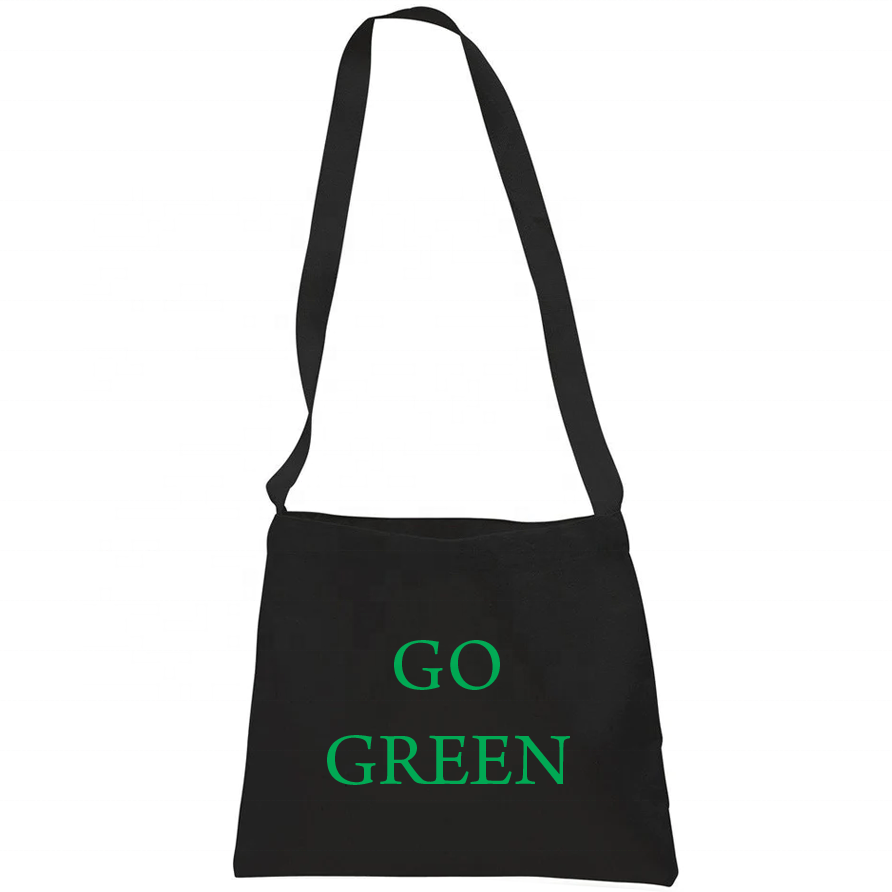 กระเป๋าข้างผ้าแคนวาสพิมพ์โลโก้เป็นมิตรกับสิ่งแวดล้อมพร้อมด้ามจับยาว