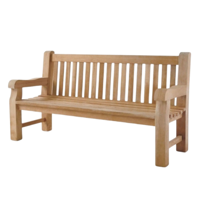Eco-friendly garden bench made of strong teak wood and good for outdoor use, equipped with armrests