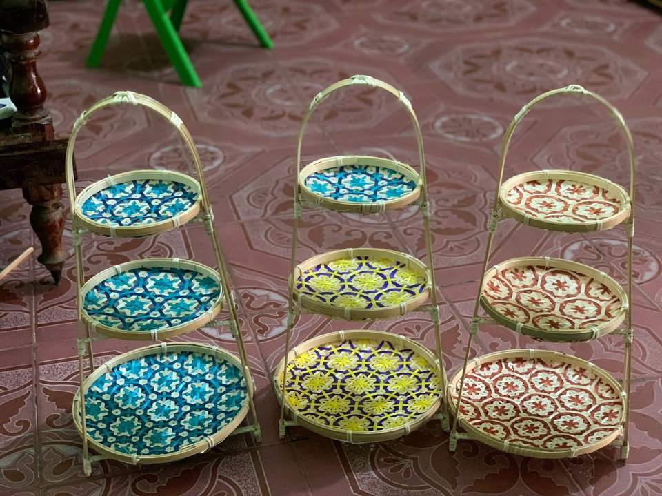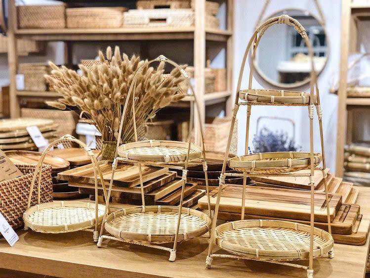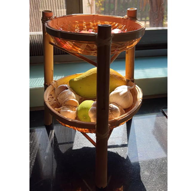 ตะกร้าเก็บของทำจากไม้ไผ่ทอมือแบบเป็นมิตรกับสิ่งแวดล้อม ชั้นวางของไม้ไผ่สำหรับห้องครัว ผลิตในเวียดนาม