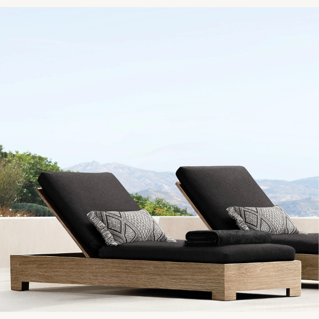 เก้าอี้พักผ่อนไม้สักที่เป็นมิตรกับสิ่งแวดล้อม พร้อมเบาะรองนั่งและหมอนอิงนุ่มสบาย สำหรับใช้งานกลางแจ้ง ดีไซน์ทันสมัยและทนทาน