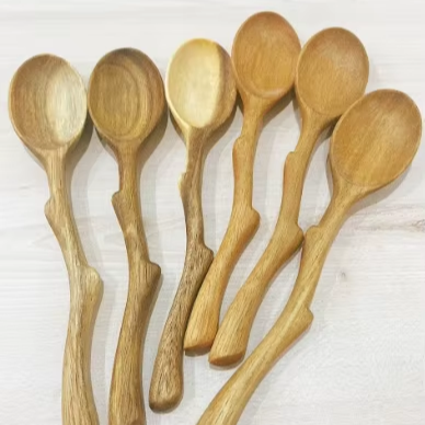 ช้อนไม้ที่เป็นมิตรกับสิ่งแวดล้อมทำจากมะพร้าวหรือไม้ยางพาราเหมาะสำหรับใช้ในครัวทุกวัน