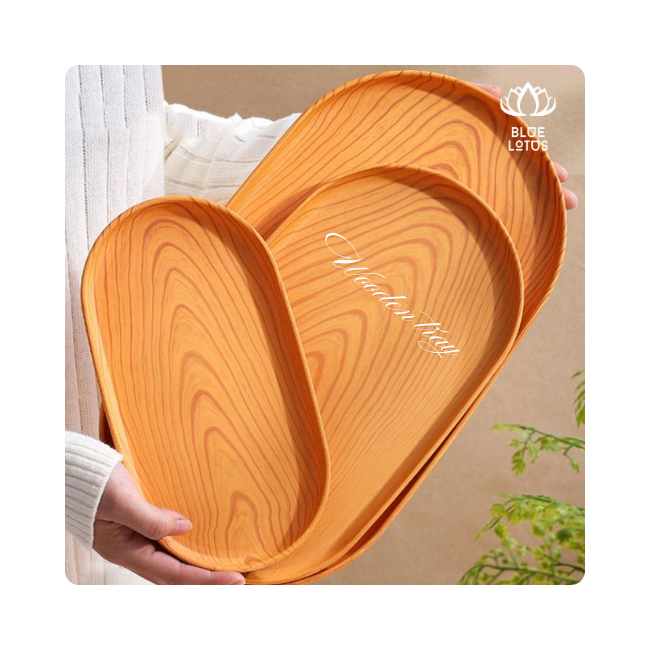 ถาดไม้สำหรับใช้บนโต๊ะอาหารเป็นมิตรกับสิ่งแวดล้อมถาดใส่ขนมแบบชนบททำด้วยมือแบบธรรมชาติทนทานนำกลับมาใช้ใหม่ได้อย่างยั่งยืน
