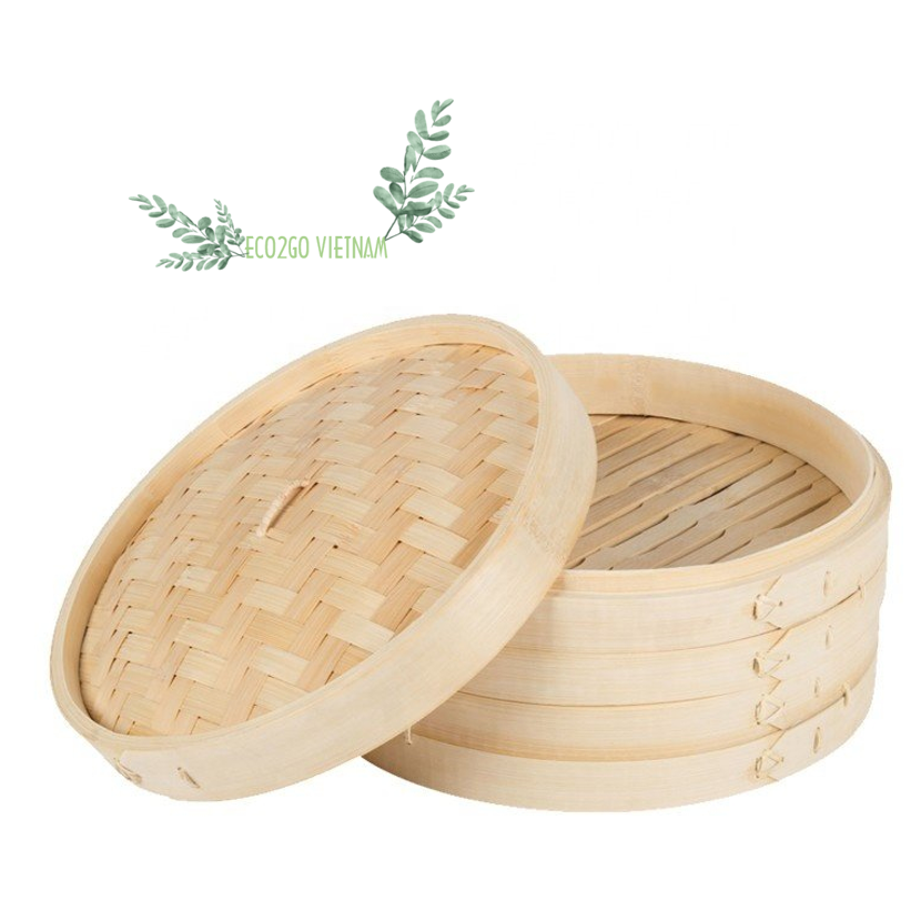 Eco2go Vietnam Eco-Friendly 2-Layer Bamboo Steamer Basket Set Engrave Laser Logo 10 12 Inch Induction Ready 2L Capacity for Home