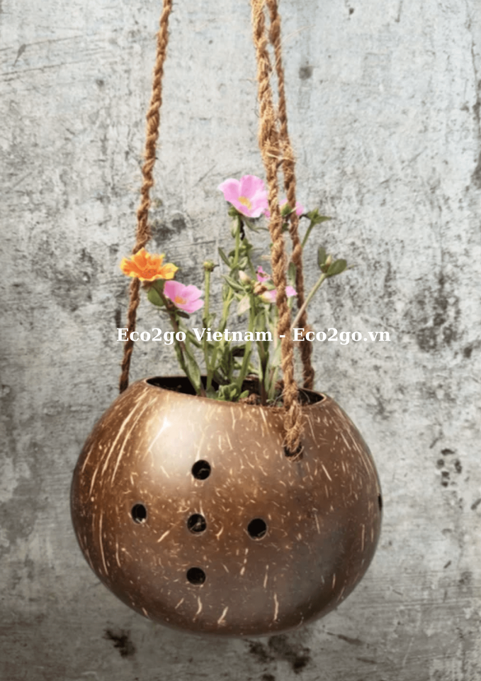 กระถางปลูกต้นไม้เปลือกมะพร้าวขนาดใหญ่กระถางดอกไม้กระถางดอกไม้เคลือบผิวด้วยอีพ็อกซี่สำหรับใช้งานบนพื้นจาก Eco2go เวียดนาม