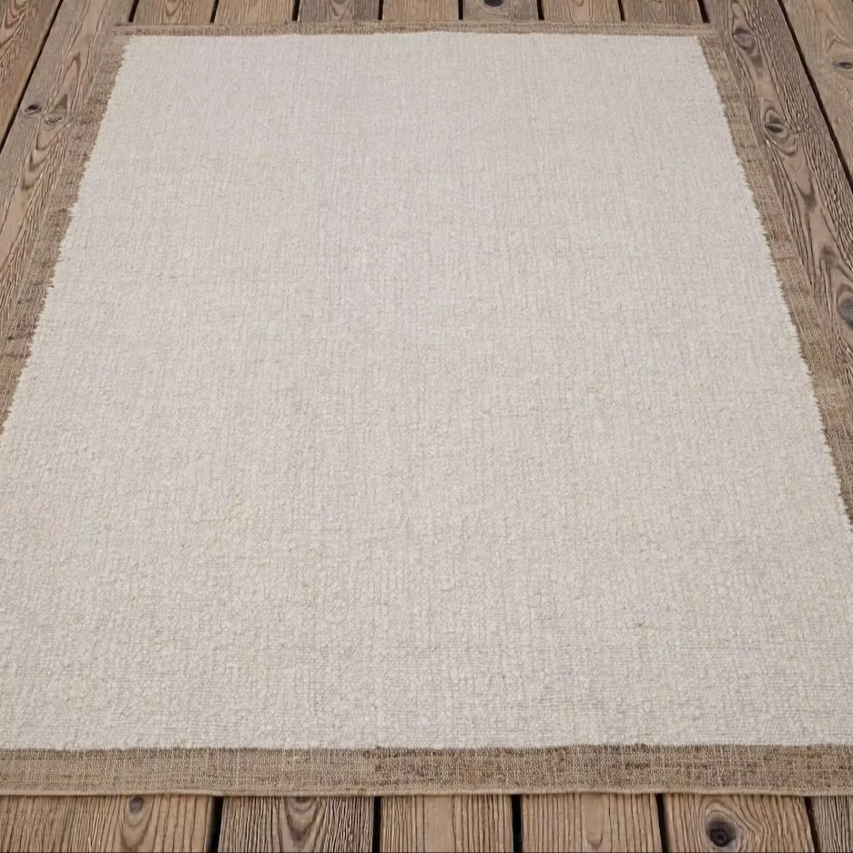 พรมปูพื้นรูปทรงสี่เหลี่ยมผืนผ้า ทำจากปอกระเจาธรรมชาติ ทอมือ เป็นมิตรกับสิ่งแวดล้อม กันลื่น เหมาะสำหรับสัตว์เลี้ยง ใช้ได้ทั้งภายในและภายนอกอาคาร สำหรับห้องนั่งเล่น สามารถสั่งทำได้