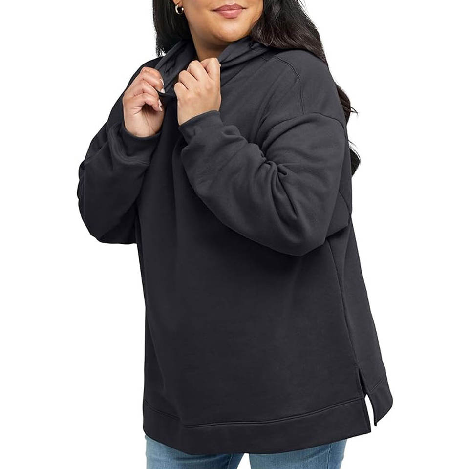 Ecosmart เสื้อฮู้ดขนแกะไซส์ใหญ่พิเศษ, เสื้อสเวตเชิ้ตมีฮู้ดสีดำล้วนมีกระเป๋า
