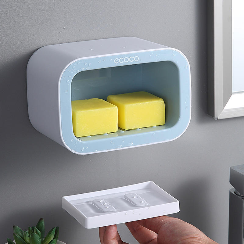 ที่วางสบู่ติดผนัง Ecoco แบบสี่เหลี่ยม ทำจากพลาสติก พร้อมจุกดูดสุญญากาศ สำหรับห้องน้ำ ชั้นวางสบู่หลายชั้น