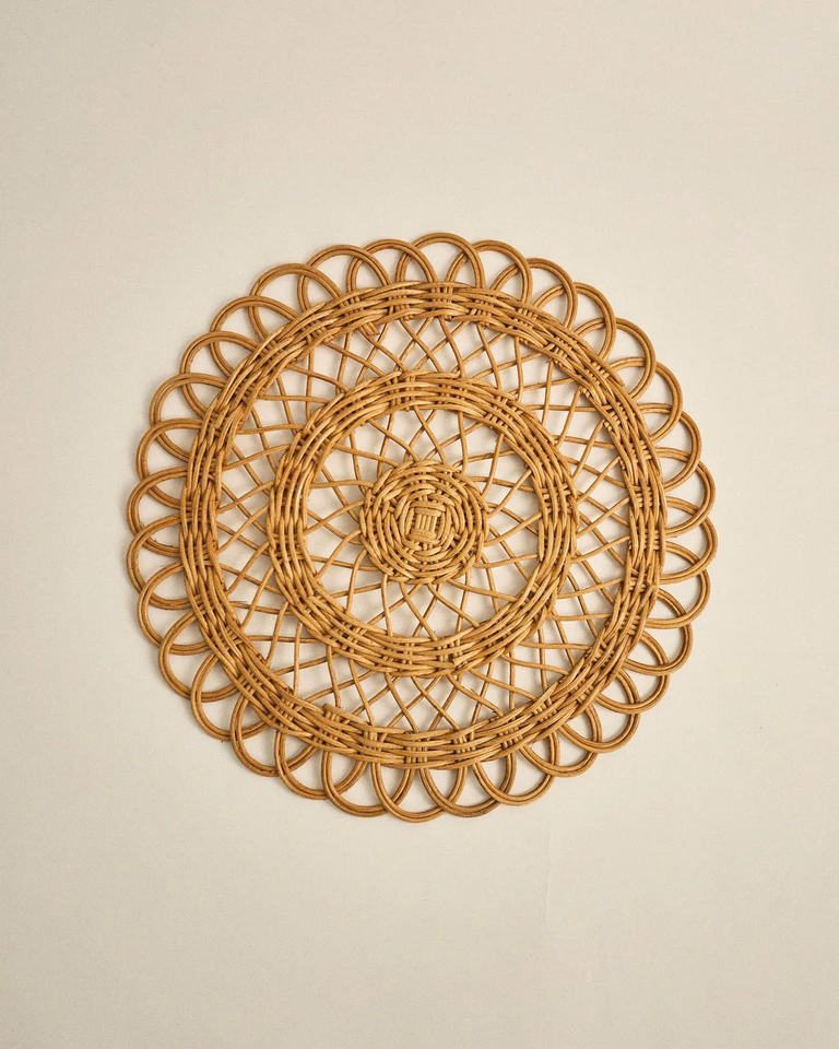 แผ่นรองจานหวายทรงกลม3ชิ้นเป็นมิตรต่อสิ่งแวดล้อมแผ่นรองจานหวายสำหรับงานปาร์ตี้