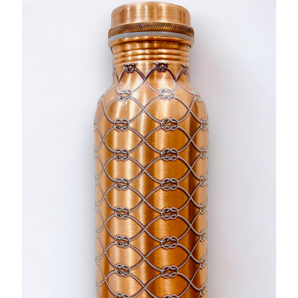 Ecofriendly copper bottle with leakproof lid handcrafted look and Ayurvedic water storage features for fitness use