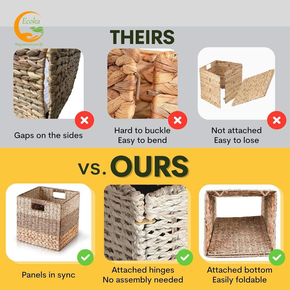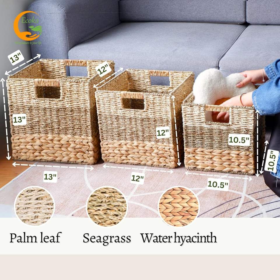 ตะกร้าเก็บของอเนกประสงค์และตะกร้าผ้า Ecoka ทำจากผักตบชวาแบบพับได้ เป็นมิตรกับสิ่งแวดล้อม จากเวียดนาม ราคาถูก