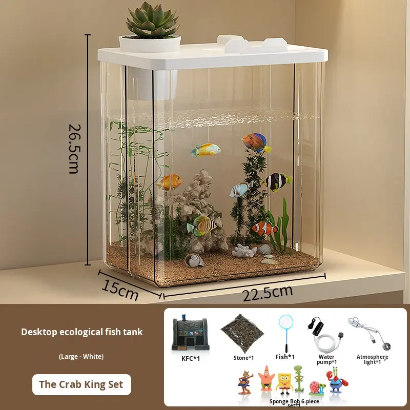 ตู้ปลาพลาสติกแบบอีโคโลจี สำหรับตั้งโต๊ะ โปร่งใสสูง สำหรับปลาเบต้า ทรงสี่เหลี่ยม พร้อมฝาปิดระบบหมุนเวียนออกซิเจนในตัว สำหรับปลาทอง