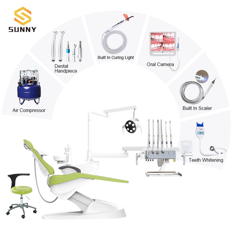 เก้าอี้ทำฟัน LED ไฟฟ้าทำจากเหล็กราคาประหยัดพร้อมเบาะหนัง PU ปรับสีได้ตามต้องการ