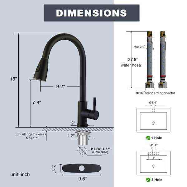 Faucet Height:มากกว่า12in, มากถึง3.9in, 8-9.9in